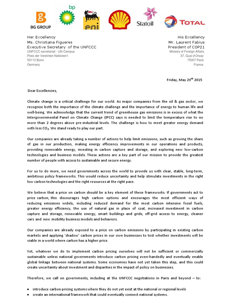 Paying for Carbon Letter Low Carbon Economy United Nations